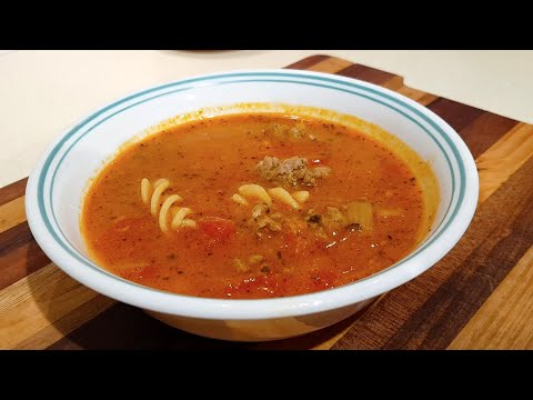 Italian Sausage, Tomato, and Pesto Soup is a family-friendly dinner idea, and this soup can be made with macaroni or cauliflower rice, whichever you prefer.