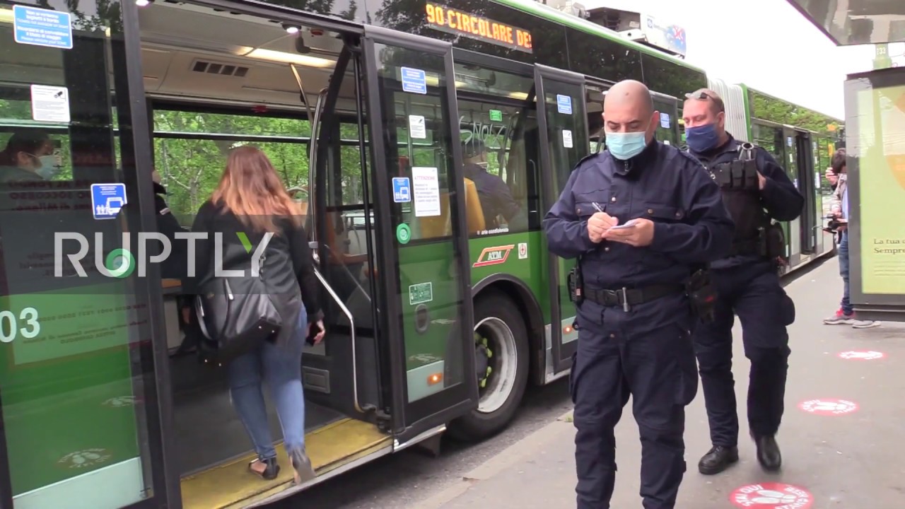 New signs instructing the public on social distancing requirements appeared on Milan public transport on Monday, as Italy prepares to enter its second phase of the coronavirus lockdown.