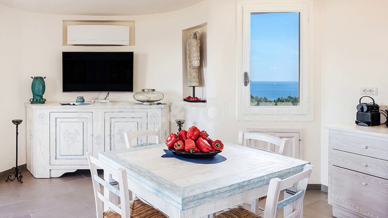 Set in the residential compound of Cala De Flores, this recently renovated apartment is located just a few steps from the sandy beach of Cala Granu – of which enjoys amazing views. The amenities of the compound of which the apartment benefits from and its location make of this property the perfect choice for a family Holiday: with lush shared green areas, tennis court, and a splendid terrace with panoramic views and swimming pool. The interiors are airy and bright and decorated mainly in white shades, and features: a lovely living and dining area with sea views framed by a glass door allowing access to the terrace with alfresco dining area, a kitchenette, three bedrooms – a master one with bathroom and a double and single one with shared bathroom. Ideally located, this apartment is the key to enjoy Costa Smeralda at its best: Porto Cervo and its suggestive piazzettas and the most iconic beaches of Costa Smeralda are easily reachable in a few minutes driving, while the international Olbia-Costa Smeralda airport is just 25 kilometers driving away.