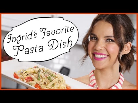 On today’s episode of Ingrid Dishes, Ingrid Nilsen (aka Missglamorazzi) shares her recipe for her all time favorite pasta dish! This tagliatelle recipe contains a delicious blend of asparagus, cherry tomatoes, garlic, cream, parmesan cheese and pancetta. Follow the recipe and give this dish a try! Let us know how yours came out in the comments below.