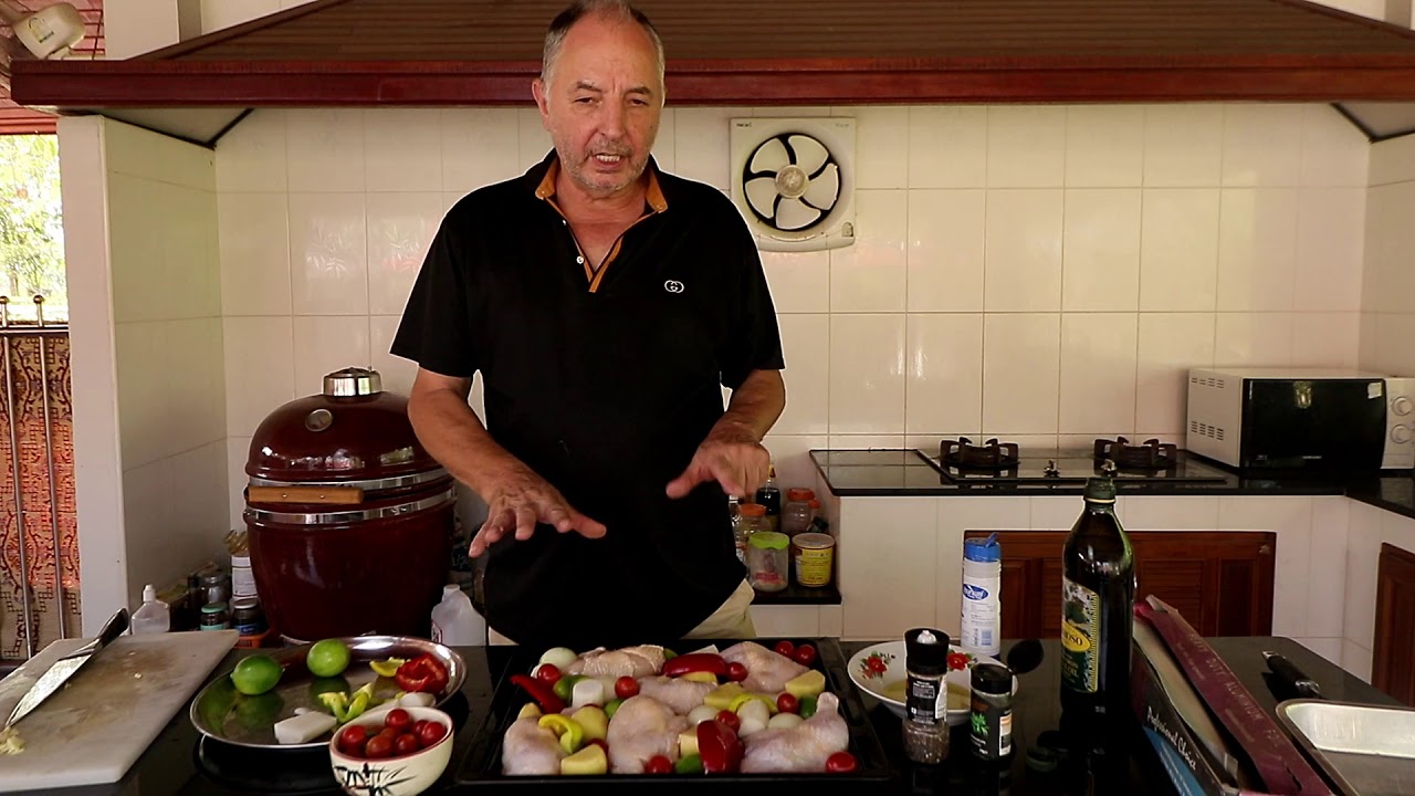 4 Free range chicken breasts skin on. Or Thighs depends upon taste.