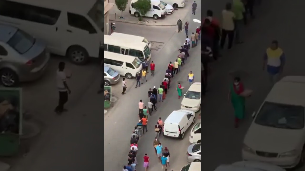 “شاهد” آلاف الوافدين يقفون طوابير طويلة لاستلام وجبات الافطار في المهبولة