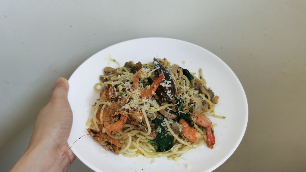 How to cook seafood pesto pasta at home. Easy home cooking during this ECQ.
