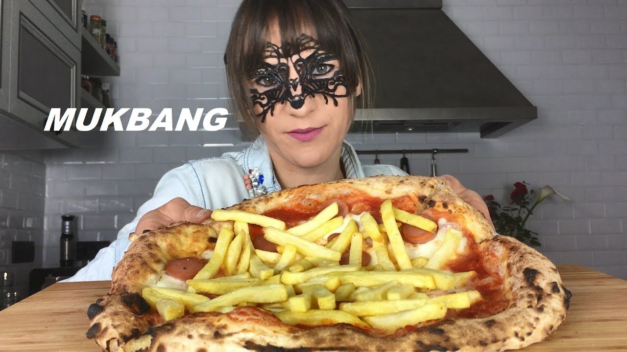 MUKBANG ITA: MANGIO PIZZA MARGHERITA GIGANTE CON WURSTEL E PATATINE FRITTE (EATING SHOW)
