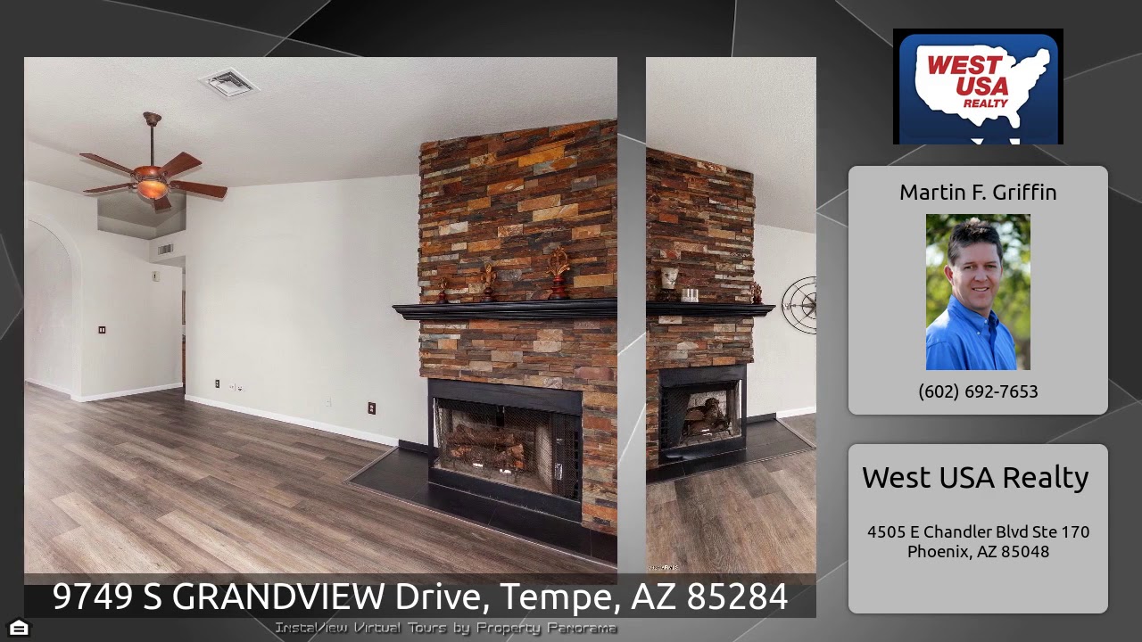 The Virtual Tour for the property at 9749 S GRANDVIEW Drive, Tempe, AZ 85284 listed for $475,000: Other homes for sale by Martin F. Griffin of West USA Realty: This home is gorgeous inside & out! Starting with beautiful curb appeal that has wonderful mature shade trees and RV gates for this cul-de-sac lot. Enter to beautiful wood floors throughout the home. The spacious open floor plan for the kitchen, dining and family rooms are perfect for gathering with friends & family! The family room has a cozy brick fireplace. The eat-in kitchen has an abundance of oak cabinets, beautiful backsplash, …