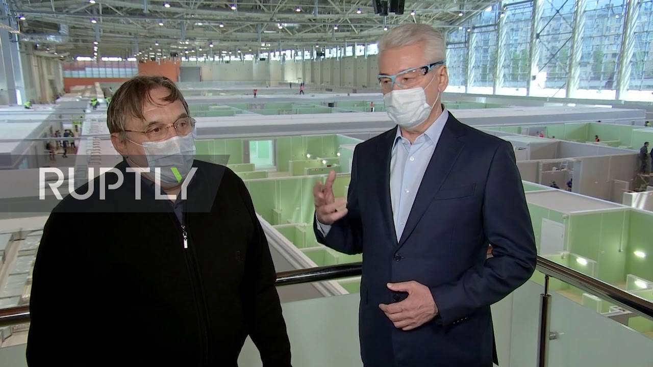 Moscow Mayor Sergei Sobyanin visited the construction site of one of five new temporary COVID-19 hospitals in the Russian capital at the VDNKh exhibition centre on Thursday.
