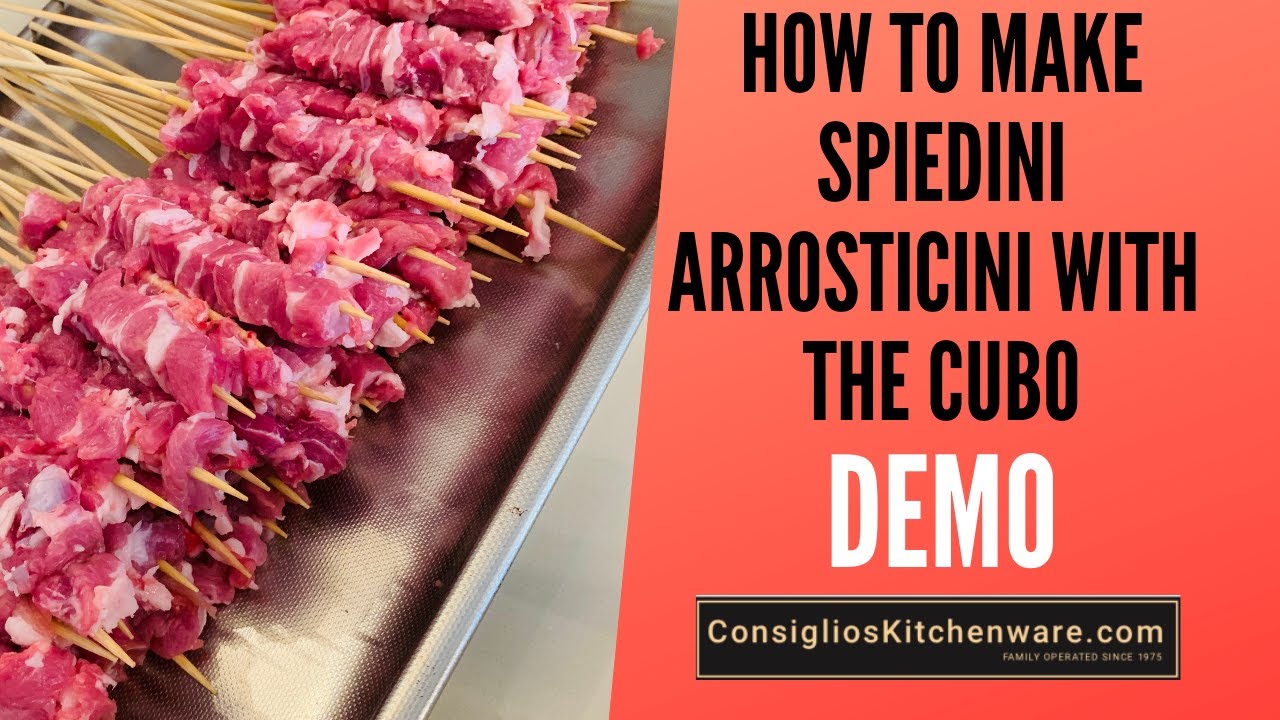 The Cubo makes 100 spiedini at a time, ConsigliosKitchenware.com has all the tools and supplies needed for making and barbecuing.