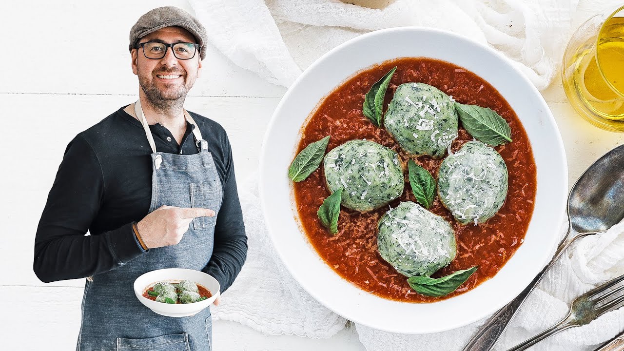 This delicious recipe for gnudi are tasty ricotta cheese dumplings loaded up with spinach and parmesan cheese and are served with Pomodoro sauce.