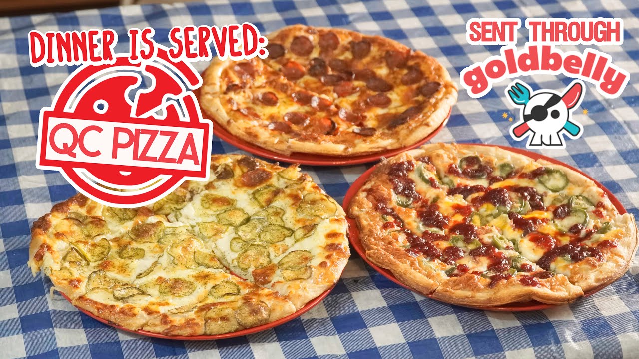 Dinner is served everybody, and this episode #9 features frozen pizzas from QC Pizza in Mahtomedi, Minnesota which has three different pizzas available nationwide via GoldBelly!! I attempted and completed their “Kinda Big Dill” Pizza Challenge back in December 2019, and the pizzas were amazing, so I wanted to enjoy some more pizza from the comfort of my own home, thanks to QC Pizza’s partnership with GoldBelly. QC is short for Quad Cities and Dennis the owner and his team serves Quad Cities-Style pizzas, and they are most known for their “Kinda Big Dill” Pickle Pizza which went viral on Facebook thanks to a video published by FoodBeast. Thanks to the hard-working team at QC Pizza for the delicious dinner they sent me to serve myself. BIG thanks to everyone helping us via Patreon for your support which is sponsoring this series where we help small businesses and restaurants mostly in Springfield, Missouri where I live.