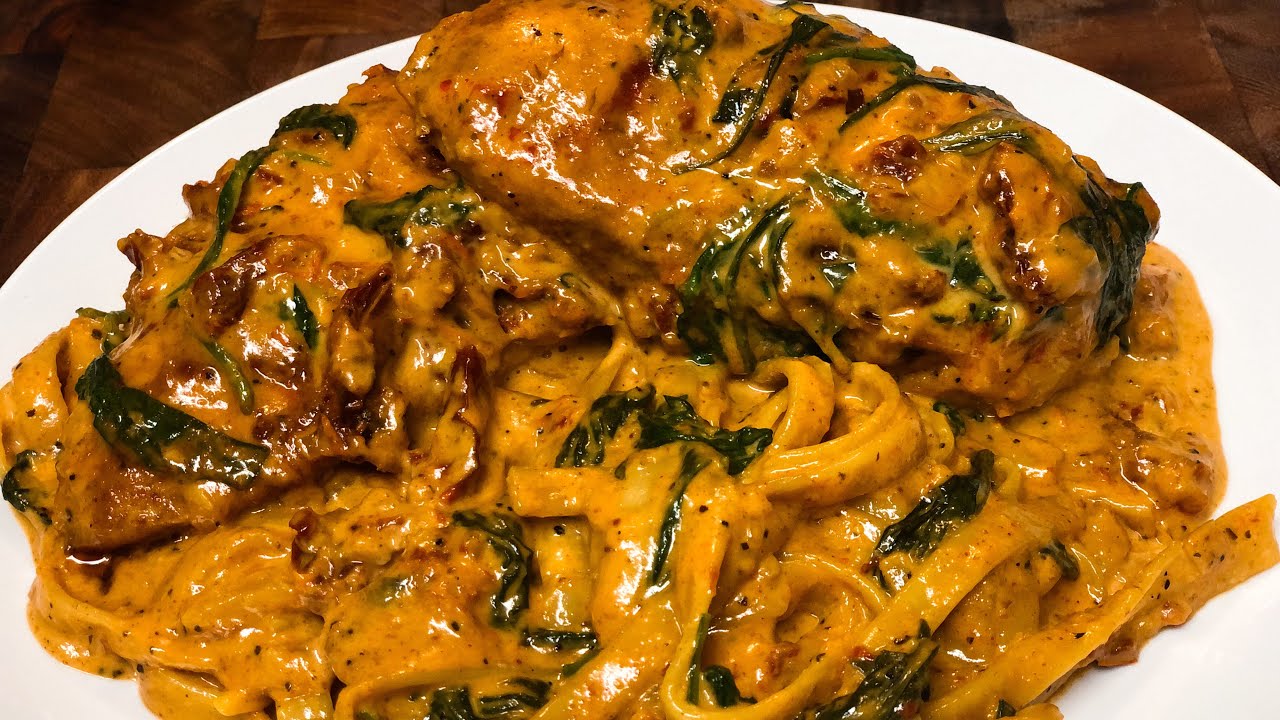 Spinach, sun-dried tomatoes and fettuccine sauce can be made in just 25 minutes! I’m so in love with this creamy and delicious Italian pasta. This is definitely a top on my “favorite dishes” list! This awesome dish is perfect for a busy week night or a weekend date night.