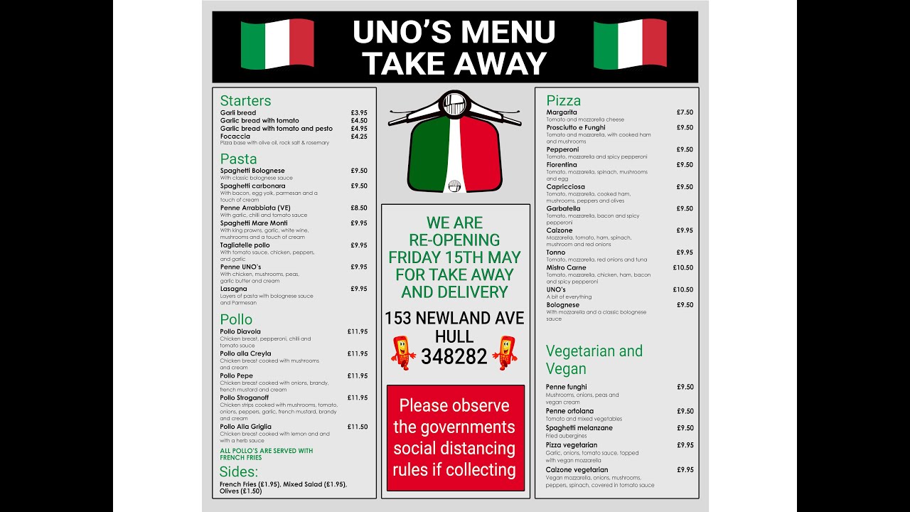 TAKEAWAY & DELIVERY HULL You Can Now Enjoy Your Favourite Uno’s Meal Made Fresh For You To Pick Up Or Delivered Safely To Your Home:) Tue – Sun 5PM To 9PM Uno’s Trattoria Pizzeria 153 Newland Ave Hull (01482) 348282 ampcuisinedeliveryFoodHullitalianitalian cuisineitalian foodItalyItaly CuisineItaly FoodPizzeriaTakeawaytrattoriaUno39svideoVlogYouTube