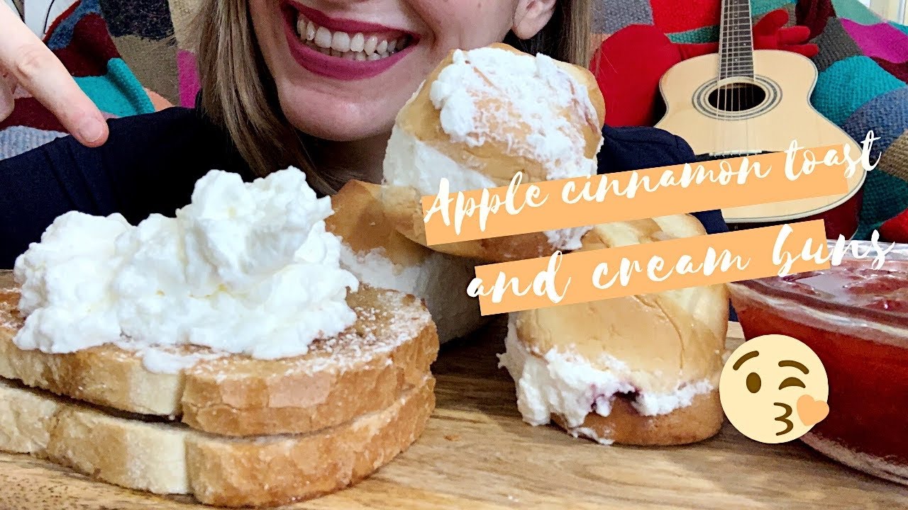 In questo video mangerΓ² con voi Toast mela e cannella, e panini con la panna.
