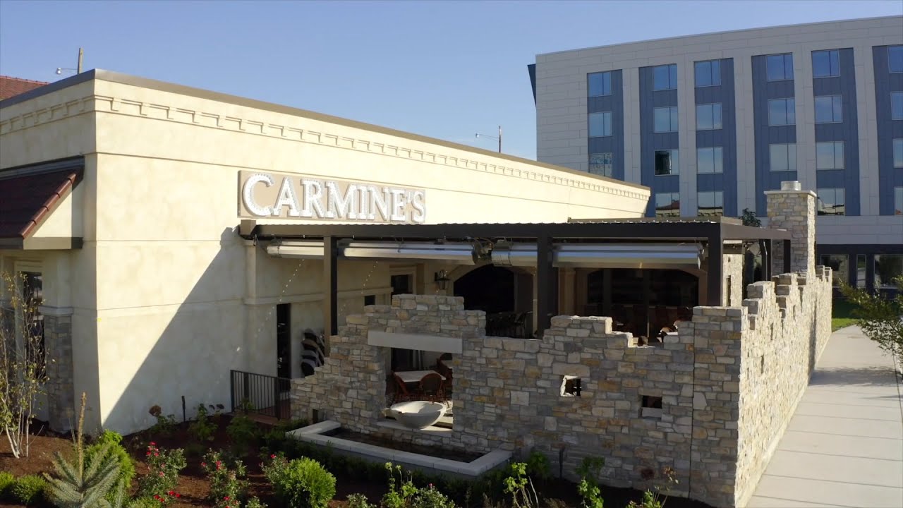 This enhanced patio at Carmine’s Rosemont Restaurant, part of the Rosebud Restaurant Group, is located just outside of Chicago, Illinois. Patio Enhancement Group designed and installed an 1800 square foot, 12 bay motorized louvered roof, along with 10 infrared heaters, and 4 Bluetooth controlled 7′ fans to create a truly unique patio experience.