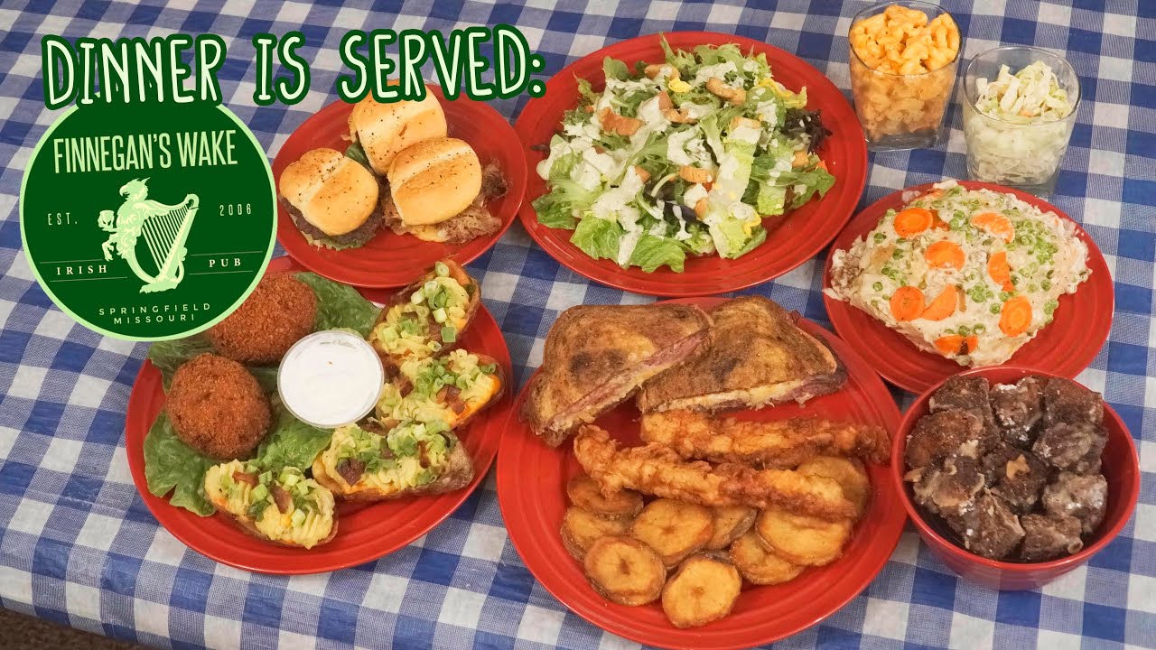 Dinner is served everybody, and this episode #11 features Finnegan’s Wake Irish Pub in downtown Springfield, Missouri!! I ordered 7 delicious sets of items from their to-go menu which was A LOT of food – 2 appetizers, 4 entrees, and a sweet dessert. Finnegan’s Wake Irish Pub is where my friends and I go most often when we go out around downtown Springfield, MO. The atmosphere is always fun and we have a great time there. Thanks to the hard-working team at Finnegan’s Wake Irish Pub for the delicious dinner they served me. BIG thanks to everyone helping us via Patreon for your support which is sponsoring this series where we help “mom and pop” small businesses and restaurants in Springfield, MO where I live.
