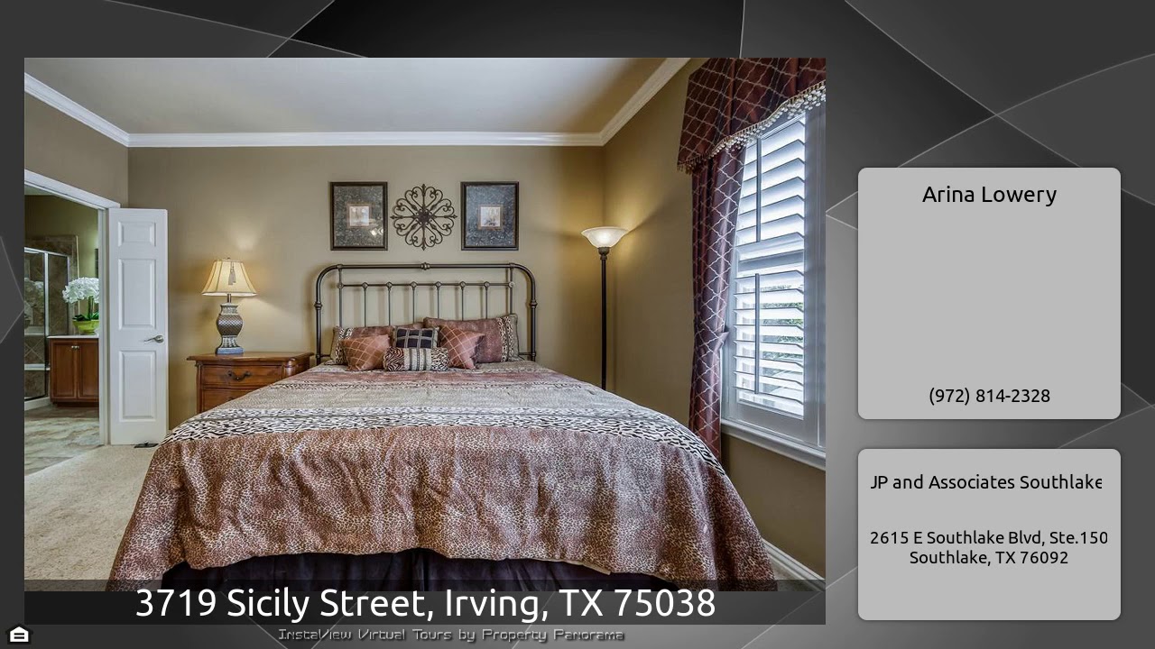 The Virtual Tour for the property at 3719 Sicily Street, Irving, TX 75038 listed for $275,000: Other homes for sale by Arina Lowery of JP and Associates Southlake: Immaculately maintained 2 bedroom, 2.5 bath townhome located in the Le Chateau subdivision. Pride of ownership shows throughout. Wood-look porcelain tile throughout downstairs. Granite countertops and SS appliances in kitchen. Open concept with kitchen and dining open to living room which has soaring ceilings. Plantation shutters throughout. Both bedrooms plus 2 baths upstairs. Half bath downstairs. Ideal location! Conveniently …