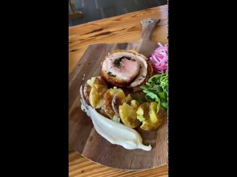 Porchetta (Italian pronunciation: [porˈketta]) is a savory, fatty, and moist boneless pork roast of Italian culinary tradition. The pork is deboned, arranged carefully stuffed with liver, wild fennel, all fat and skin still on spitted, and/or roasted, traditionally over wood for at least 8 hours. Porchetta is usually heavily salted in addition to being stuffed with garlic, rosemary, fennel, or other herbs, often wild