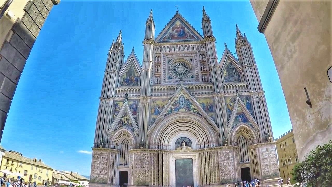 A Beautiful Day in Orvieto, Umbria, Italy. Orvieto is a city and comune in the Province of Terni, southwestern Umbria, Italy situated on the flat summit of a large butte of volcanic tuff. The city rises dramatically above the almost-vertical faces of tuff cliffs that are completed by defensive walls built of the same stone, called tufa. The territory of Orvieto was under papal control long before it was officially added to the Papal States (various dates are quoted); it remained a papal possession until 1860, when it was annexed to unified Italy. The city of Orvieto has long kept the secret of its labyrinth of caves and tunnels that lie beneath the surface. Dug deep into the tuff, a volcanic rock, these secret hidden tunnels are now open to view only through guided tours. Orvieto Cathedral is a large 14th-century Roman Catholic cathedral dedicated to the Assumption of the Virgin Mary and situated in the town of Orvieto in Umbria, central Italy. Since 1986, the cathedral in Orvieto has been the episcopal seat of the former Diocese of Todi The white wine of the Orvieto district, to the northeast of the city, is highly prized; red wines are also grown. Orvieto is a member of Cittaslow, the slow food movement.