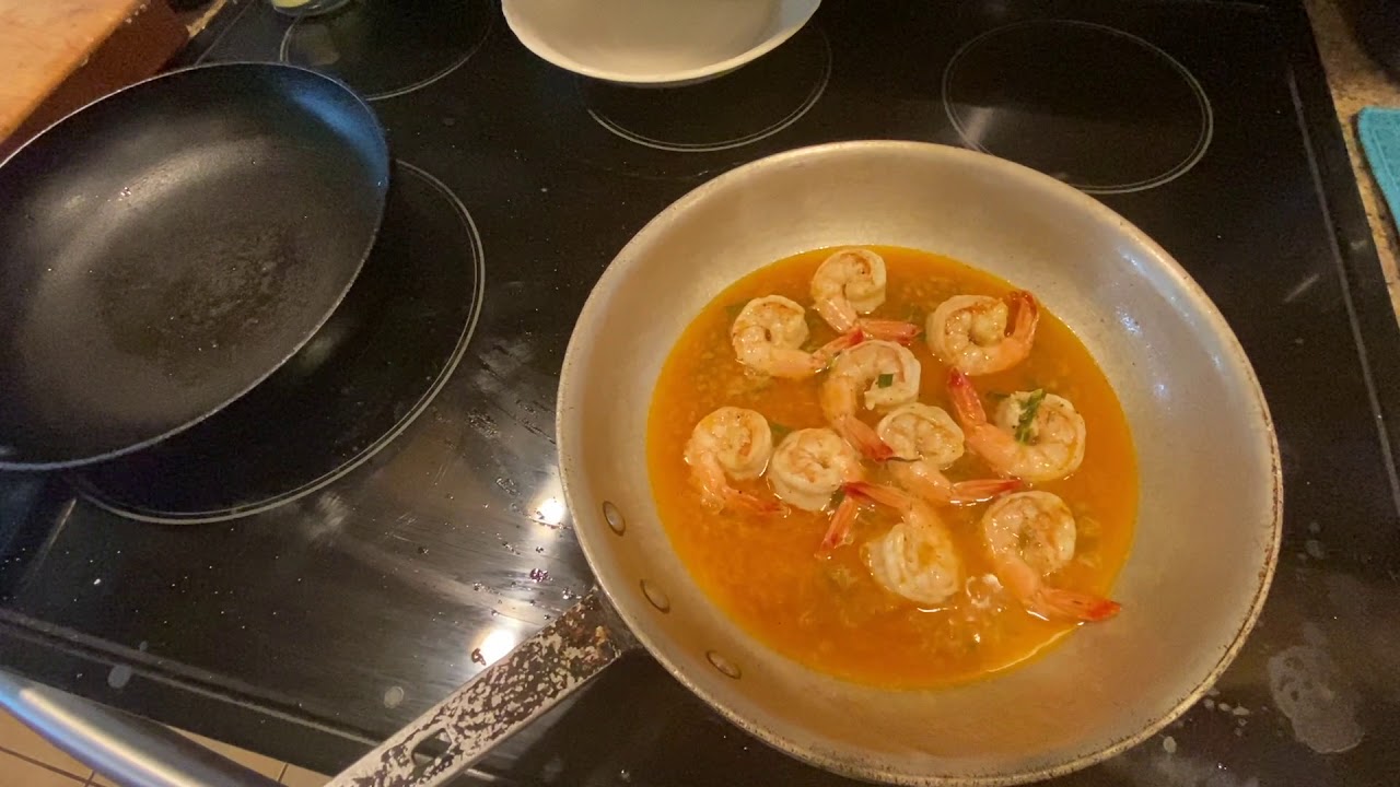 Add shrimp to skillet and turn over when they start to curl and add dash or two of white