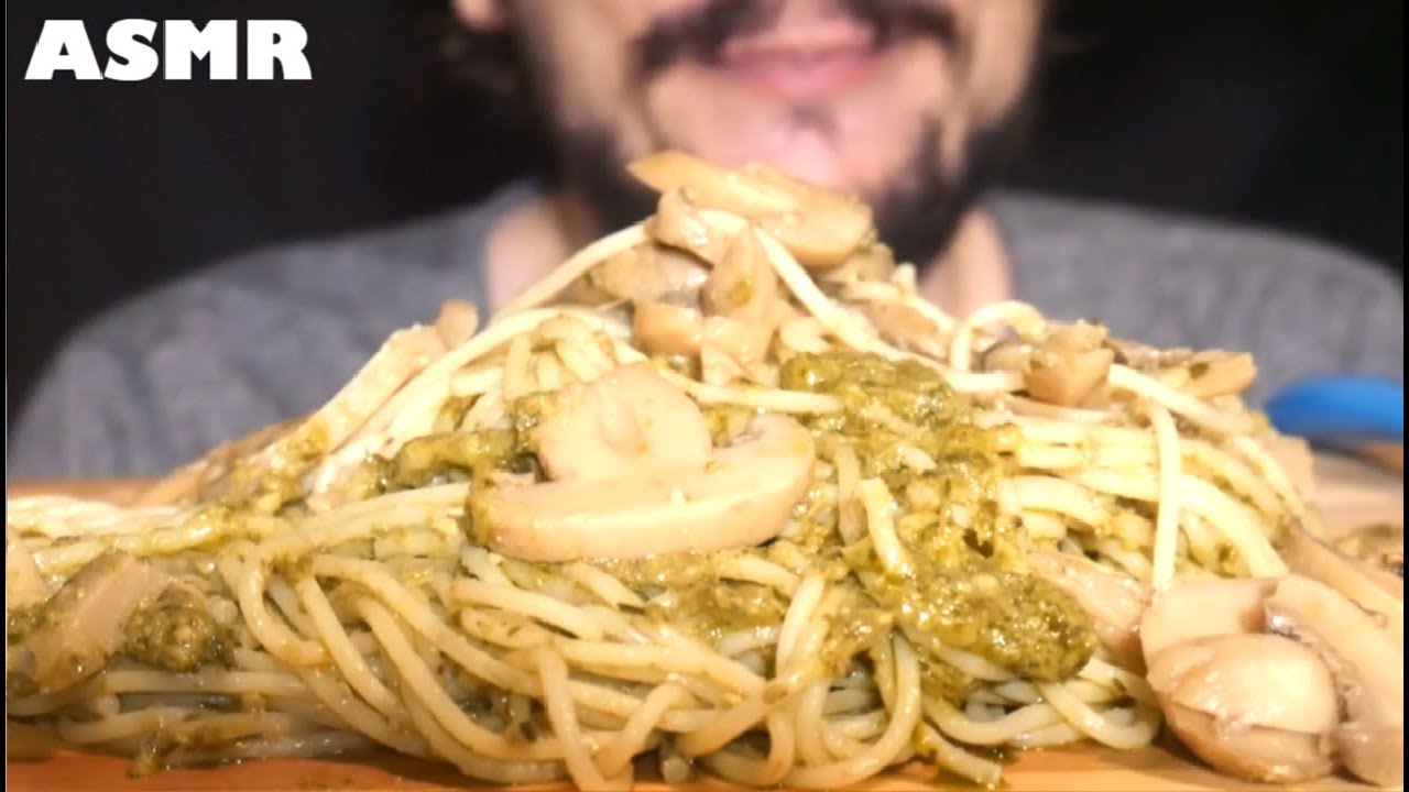 ASMR ITA PASTA PESTO GENOVESE BASIL + MUSHROOMS EATING SOUNDS *ITALY MUKBANG SPAGHETTI ITALIAN FOOD
