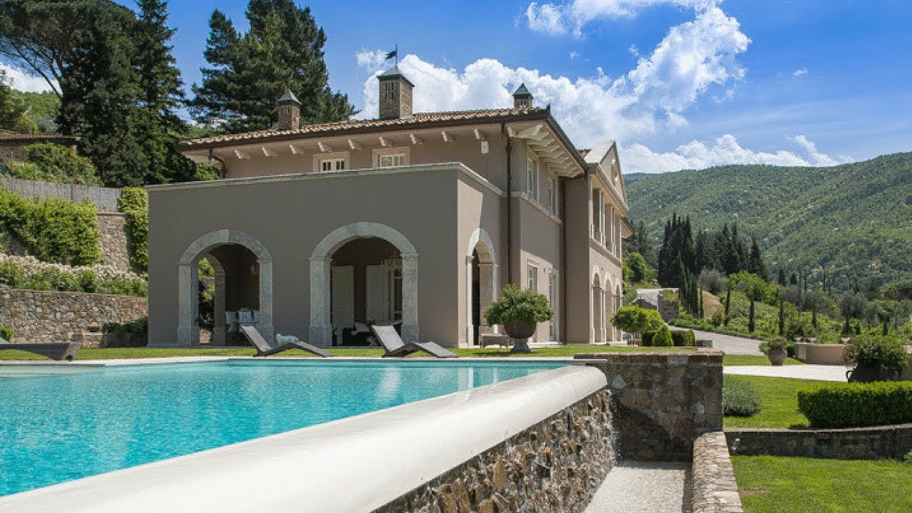 This modern luxury estate was built in the traditional Florentine style, which consists of 2 buildings that share a large, spectacular pool with panoramic views, surrounded by a paved sun terrace with sun beds and a lawn planted with flowers.