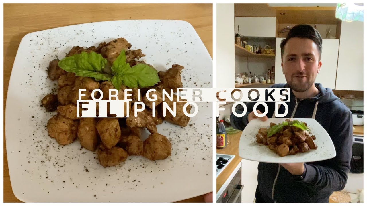 Slice the garlic, the onion and the ginger into small pieces. Put some oil in the pan and wait until the oil becomes hot. When the pan is hot you add the garlic and wait until it becomes brown. Then you add the onion and let it cook for a few minutes. Once you smell the aroma of the garlic and the onion you add also the ginger and let it cook for a few minutes. Slice the chicken and add the pieces in the pan. When the oil dries add half glass of water and let it cook for 10 minutes covering the pan. Then add soy sauce, salt and pepper and let it cook for another 10 minutes and then you are ready to serve it.