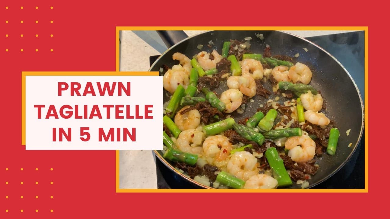 Under five minute Prawn, Asparagus and Sun Dried Tomato pasta dish. It’s a very easy and lightning fast recipe. You can impress your dinner guests even if you have short notice. You will only need a few ingredient and the food was faster to make than write the description.
