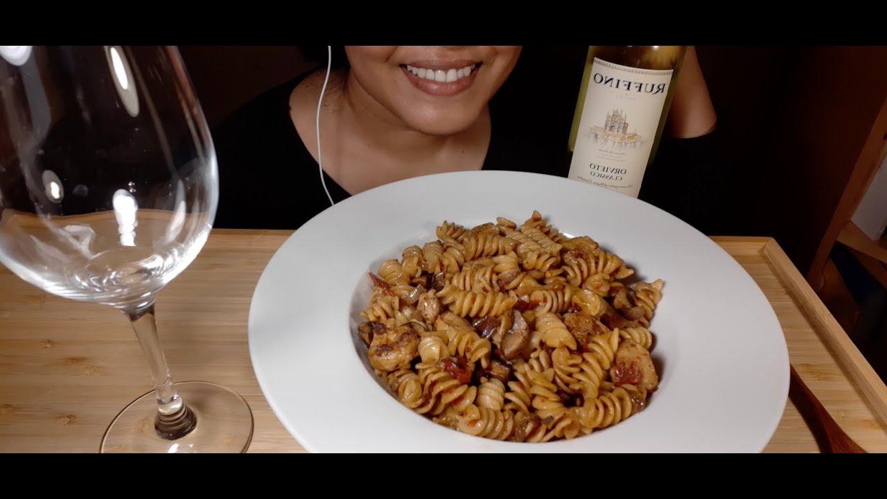 Roasted red peppers, mushrooms and spicy Italian sausage get sauteed with onions, chopped garlic and chili flakes in olive oil to create my version of Aglio e olio. The clean and crisp taste of the wine complimented the spice from the dish.