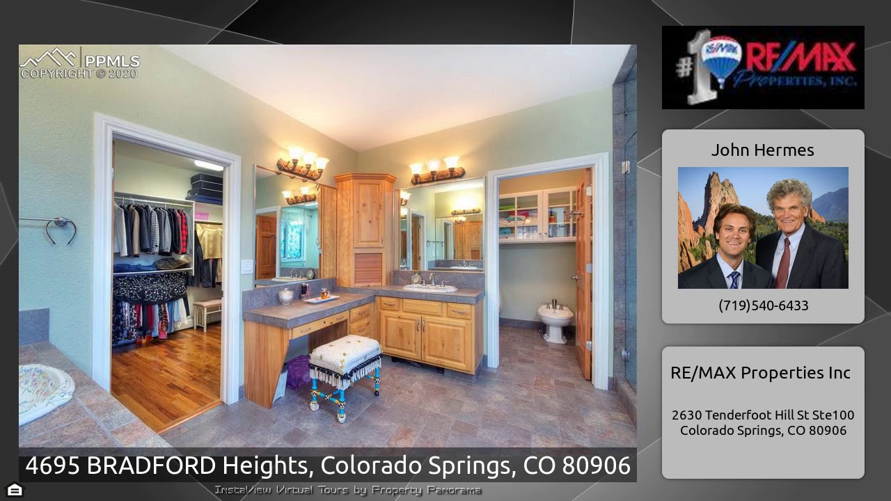 The Virtual Tour for the property at 4695 BRADFORD Heights, Colorado Springs, CO 80906 listed for $1,000,000: Other homes for sale by John Hermes of RE/MAX Properties Inc: Magnificent Ranch Style Home Located In The Desirable Penhurst Park Estate. This Home Offers Panoramic Mountain Views And Sweeping Views Of Garden Of The Gods And Beyond. The Open Floor Plan Has True Main Level Living Inclusive Of A Large Living Room, Formal Dining Room, And Two Master Suites. The Gourmet Kitchen Will Inspire Your Inner Chef With Its Granite Counters Imported From Italy, Center Island With Seating, Butler'S …