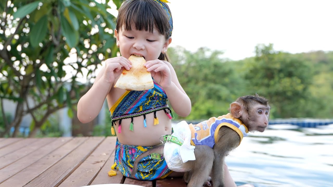1. July And Bono Very Happy To Eat Pizza At The Resort | Monkey baby :