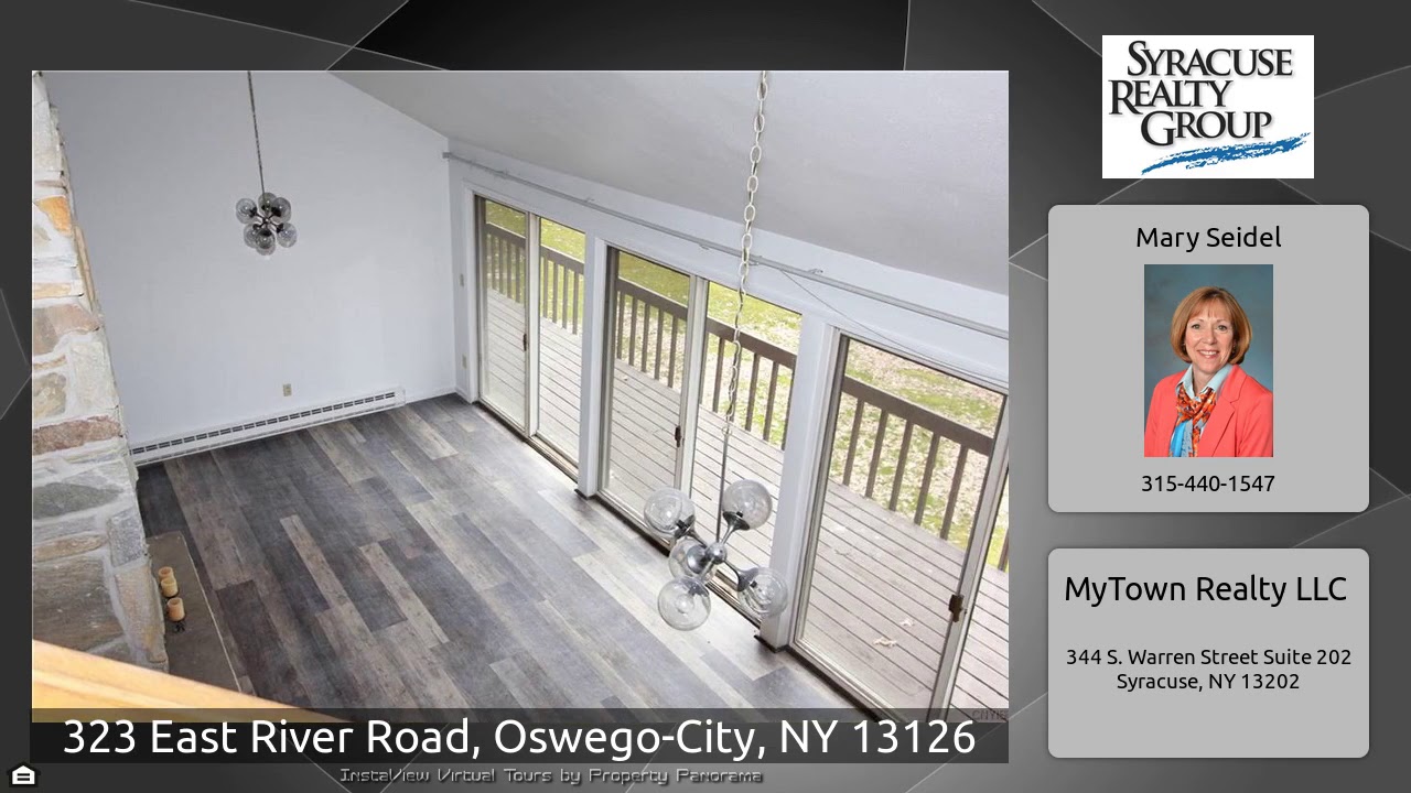 The Virtual Tour for the property at 323 East River Road, Oswego-City, NY 13126 listed for $193,500: Other homes for sale by Mary Seidel of MyTown Realty LLC: Spacious contemporary home on 1.4 acres. The large entry way leads into a huge living room with a massive Italian stone double sided fireplace, which extends to the vaulted ceiling. The wall of sliding glass doors leads to a deck which overlooks the wooded front yard and a view of the river in certain seasons. Through the wide arched opening is the combined kitchen dining area with a view of the fireplace. A sliding glass door provides …
