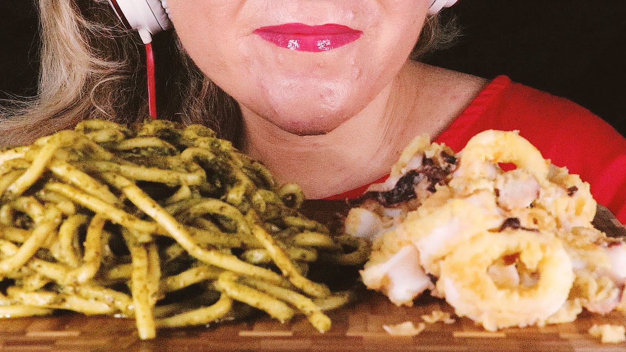 ASMR Italian Food TROCCOLI AL PESTO E CALAMARI FRITTI | EATING SOUND | MUKBANG | MARETTAASMR