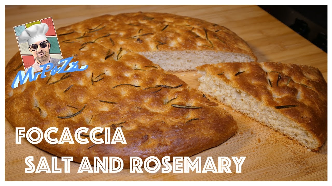Pour olive oil into a baking sheet, then place the dough on top. Use your fingertips to make dimples all over the dough. Drizzle the dough with a bit of olive oil, so it pools in the dimples, and sprinkle with sea salt and rosemary.