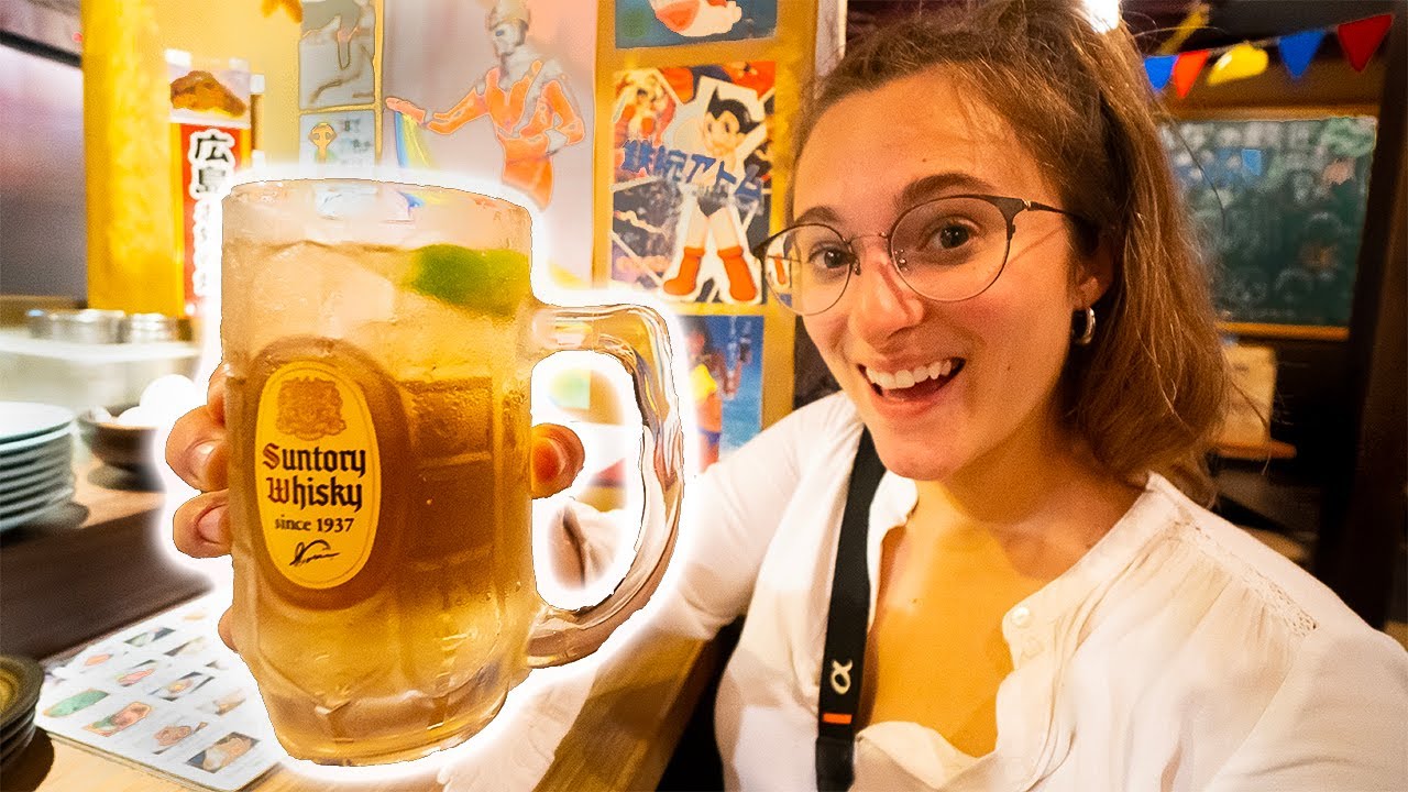 To finish our day of eating Japanese street food, we went to a local izakaya (Japanese bar). This izakaya’s specialty is Hiroshima okonomiyaki, with decor (and beer) from Okinawa. The okonomiyaki is made with a batter, crunchy vegetables, soba noodles, bacon and a fried egg stacked together as a pancake. It is topped with a special okonomiyaki sauce, mayonnaise and pickled ginger (260 NTD / USD $8.75). We also ordered chicken meatballs (240 NTD / USD $8.07) and our favorite Japanese drinks: overflowing sake and ginger highball! And what makes this izakaya special is they offer a dice rolling game. If you roll two 1’s, you get a free drink, if you roll an even number you get 50% off your drink, and if you roll an odd number, you must buy the mega sized drink! We got 50% off of our Orion beer!