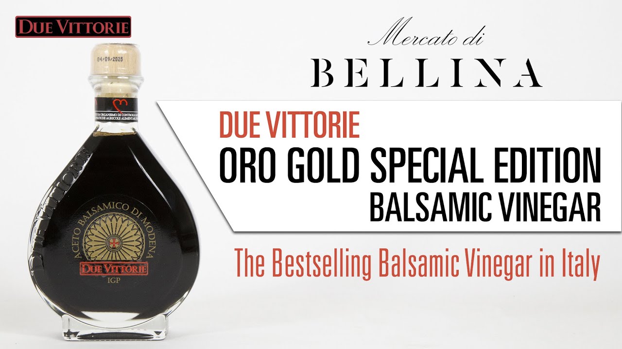 Watch for Due Vittorie Oro Gold Special Edition Balsamic Vinegar uses from appetizers to desserts. It’s the best aged balsamic vinegar of Modena packaged in an exclusive bottle.