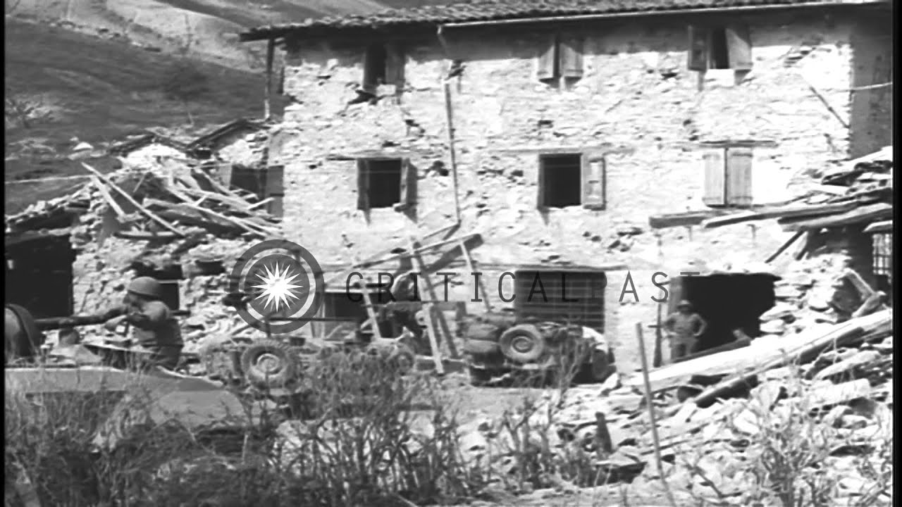 US Army 88th Division in Italy during World War II. The infantrymen advancing on the road. Members of the Italian Alpinieri Brigade greet them. They serve wine to the soldiers as they pass through the town. Houses in the area. Soldiers taking drinks. They advance on the road. Units of the 10th Mountain Division moving across a mountainous terrain. Alpinieri troops and mules, fully loaded with rations and medical supplies moving along mountain roads. Men of the 10th Mountain Cavalry advance on the road towards the front lines. Location: Italy. Date: April 19, 1945.