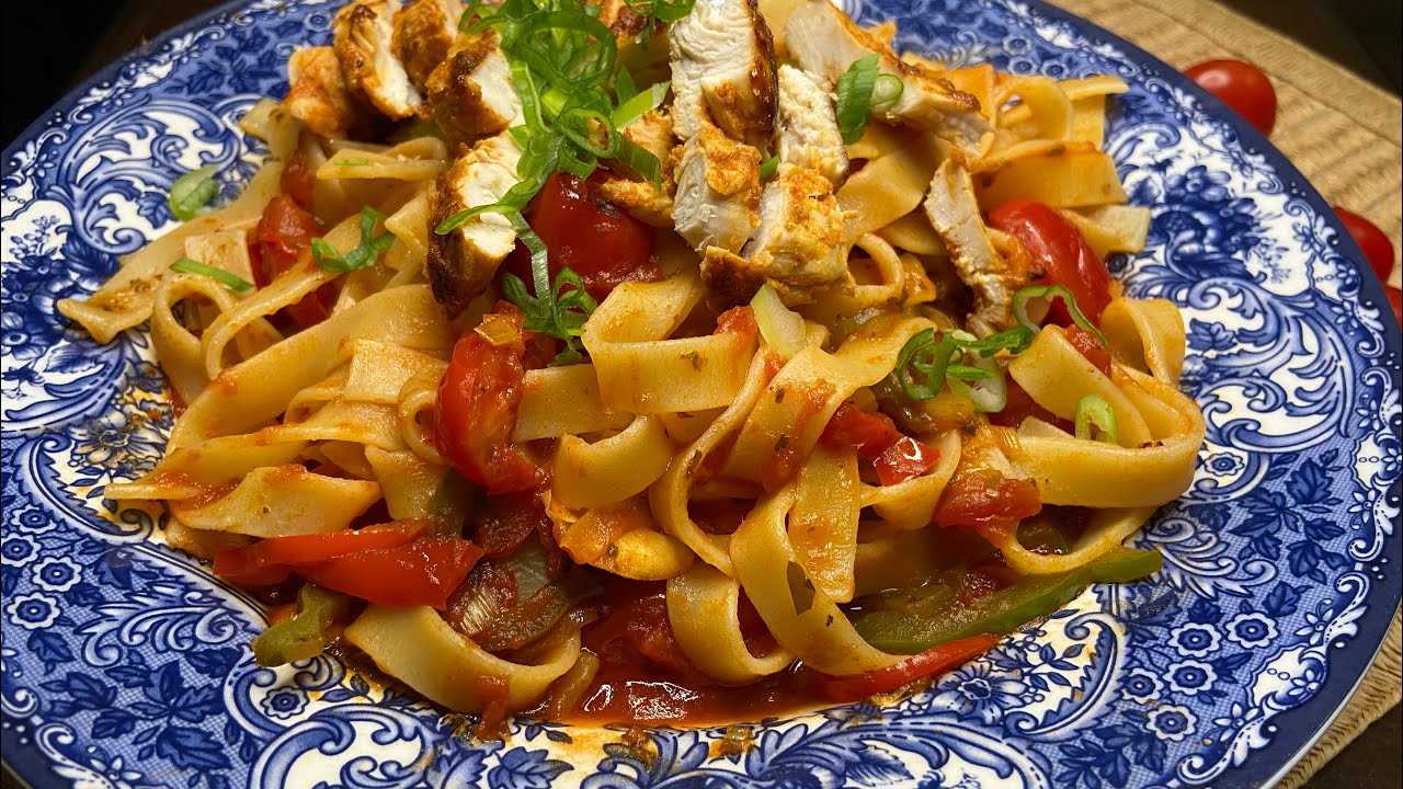Fettuccine red sauce with grilled spicy chicken, Italian pasta, Fettuccine pasta recipe, Fettuccine in red sauce with Oregano, Italian Herbs, Cherry Tomatoes, Spicy Grilled Chicken, Fettuccine with Italian tomato sauce, Fettuccine with creamy tomato sauce, Simple pasta, Pasta Fettuccine recipe, Italian recipe of Fettuccine pasta in red sauce, Ahmed Alam, The food junction