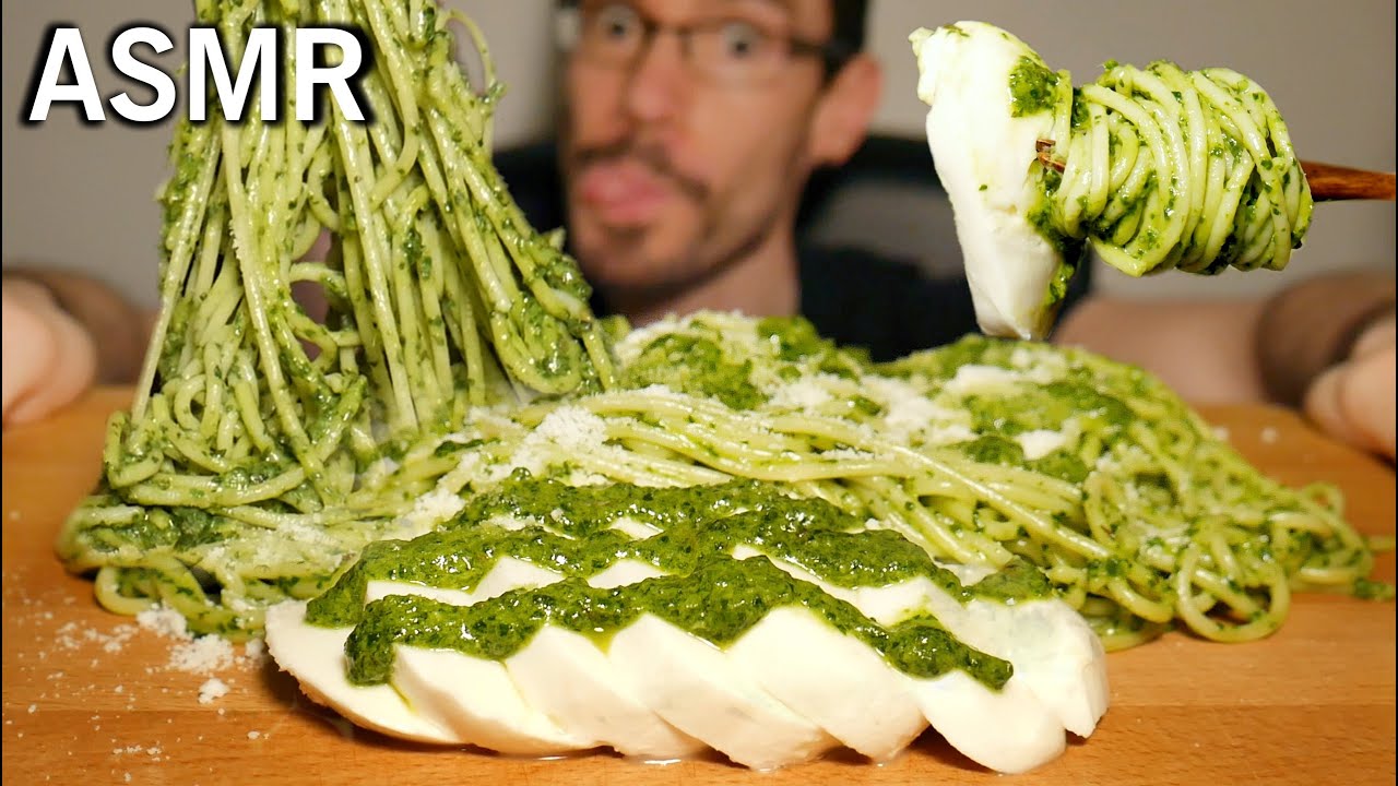 ASMR SPAGHETTI PESTO PASTA + FRESH MOZZARELLA (EATING SOUNDS) *Homemade *No talking | Iberian ASMR