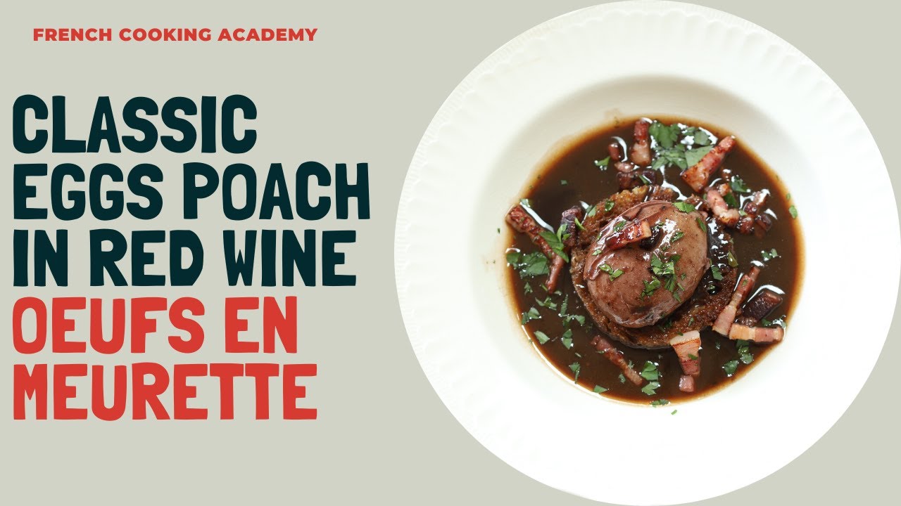 Oeufs en meurette are the famous burgundy eggs starter where eggs are poached in red wine and served with a sauce bourguignonne (burgundy red wine sauce). The eggs are served on a pan fried croutons coated with garlic then cover in sauce with a sprinkle of bacon and fresh parsley. This video will teach you how to make the classic sauce bourguignonne, how poach the eggs in red wine and serve the dish in a plate as a starter. enjoy.