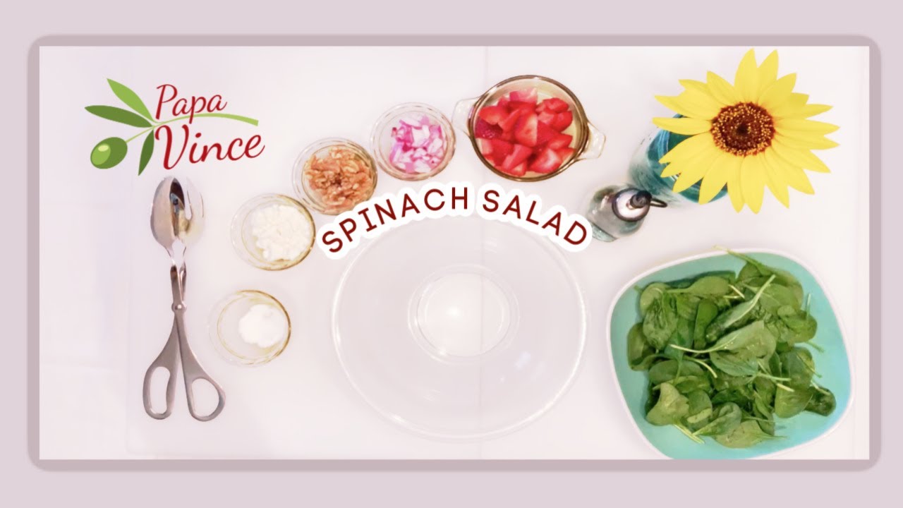 In this video, we will demonstrate how to make a fresh spinach salad with fruit while using Papa Vince Orange Extra Virgin Olive Oil