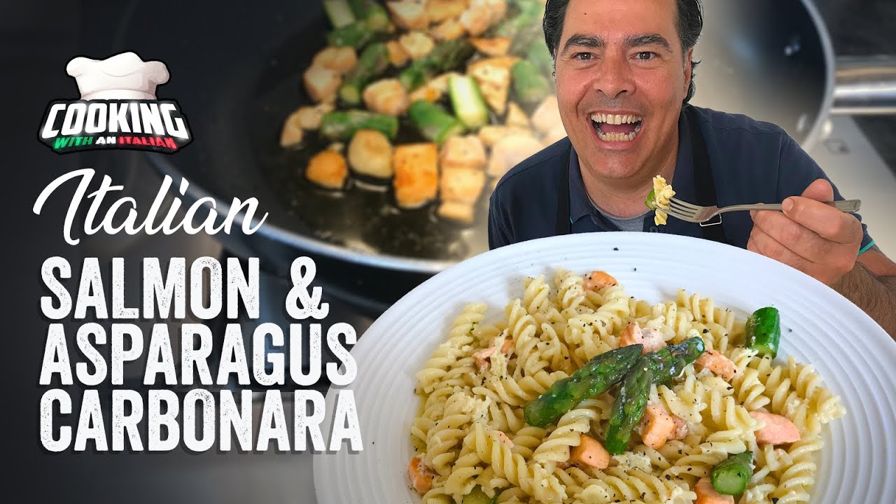 Quick and simple way of cooking a really tasty Salmon and Asparagus carbonara as demonstrated by Piero.Ingredients: Salmon Pasta Asparagus Salt & Pepper Oil Egg Edited by Ludo, find him here:#Cookingwithanitalian #carbonara #Homecooking 100asparagusAuthenticCarbonaracookingcuisineitalianItalian Cookingitalian cuisineItalyItaly CookingItaly CuisineSalmonvideoVlogYouTube