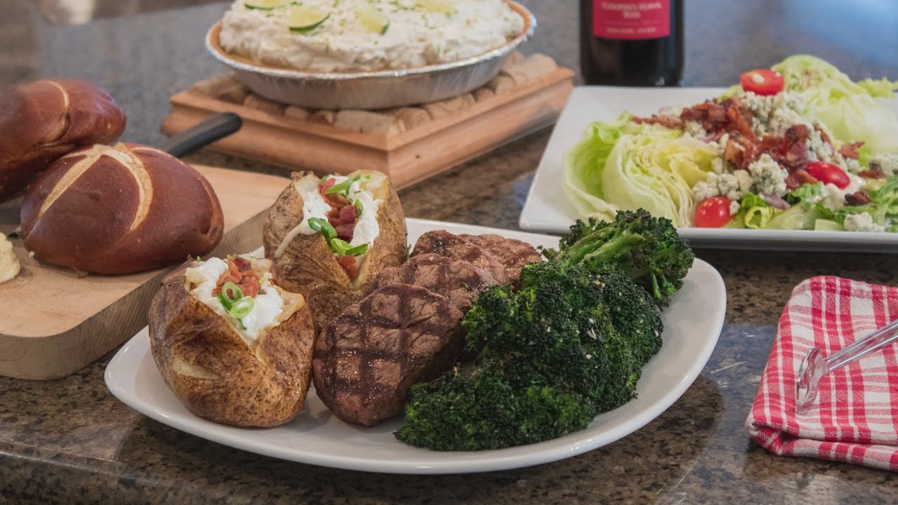 – (4 or 6) Baked Potatoes ready for the grill, plus all the Toppings