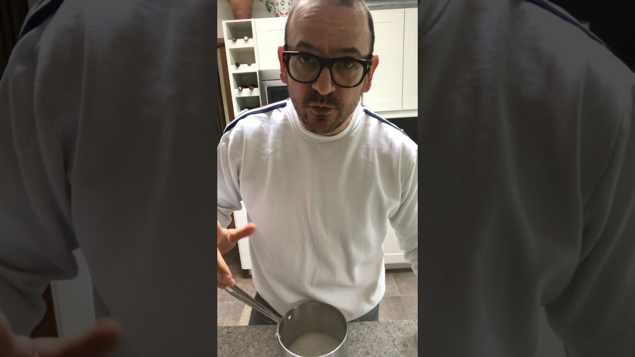 4. Once egg whites reach stiff peaks (full volume), add the cooked sugar down the side of the bowl in a quick assertive constant flow (don’t dump it all in in one shot but be quick about it). Don’t be too slow or the egg whites might overwhip at this point. Adding the hot sugar will cook the protein (albumin) that is responsible for the egg white’s foaming properties, and will keep it from overwhipping.