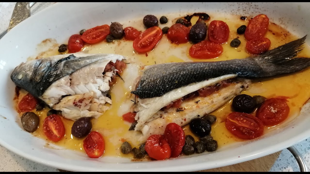 In this week’s video Rina presents a master class in how to de-bone a sea bass and stuff it with tomatoes and wild fennel, served with green sauce and roasted potatoes from our garden.