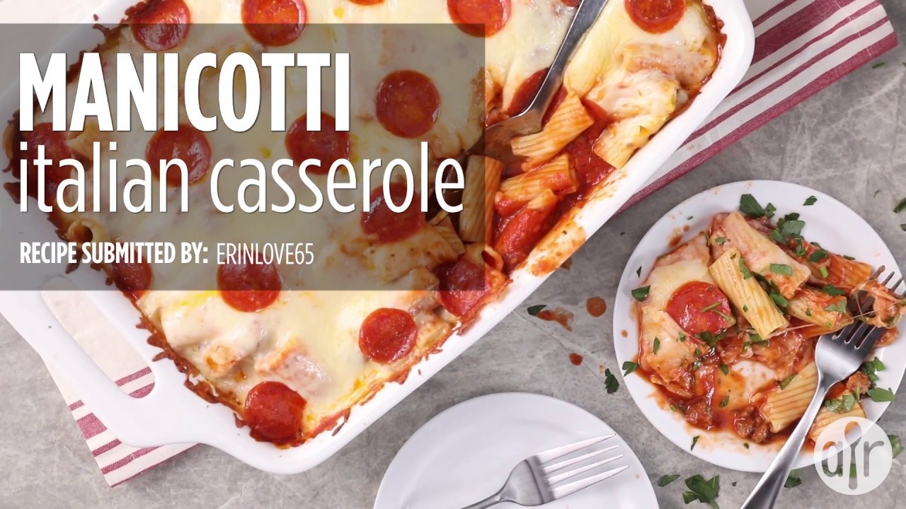 A baked pasta dish never tasted so good! Blends of cheese, Italian sausage, red sauce, and herbs make this a splendid meal! Mushrooms, rigatoni pasta, and delectable beef make this a classic dish for the whole family! Get the recipe for Manicotti Italian Casserole: