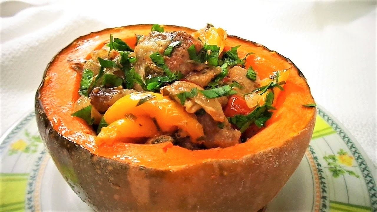 Baked stuffed pumpkin. Savory pumpkin recipes.