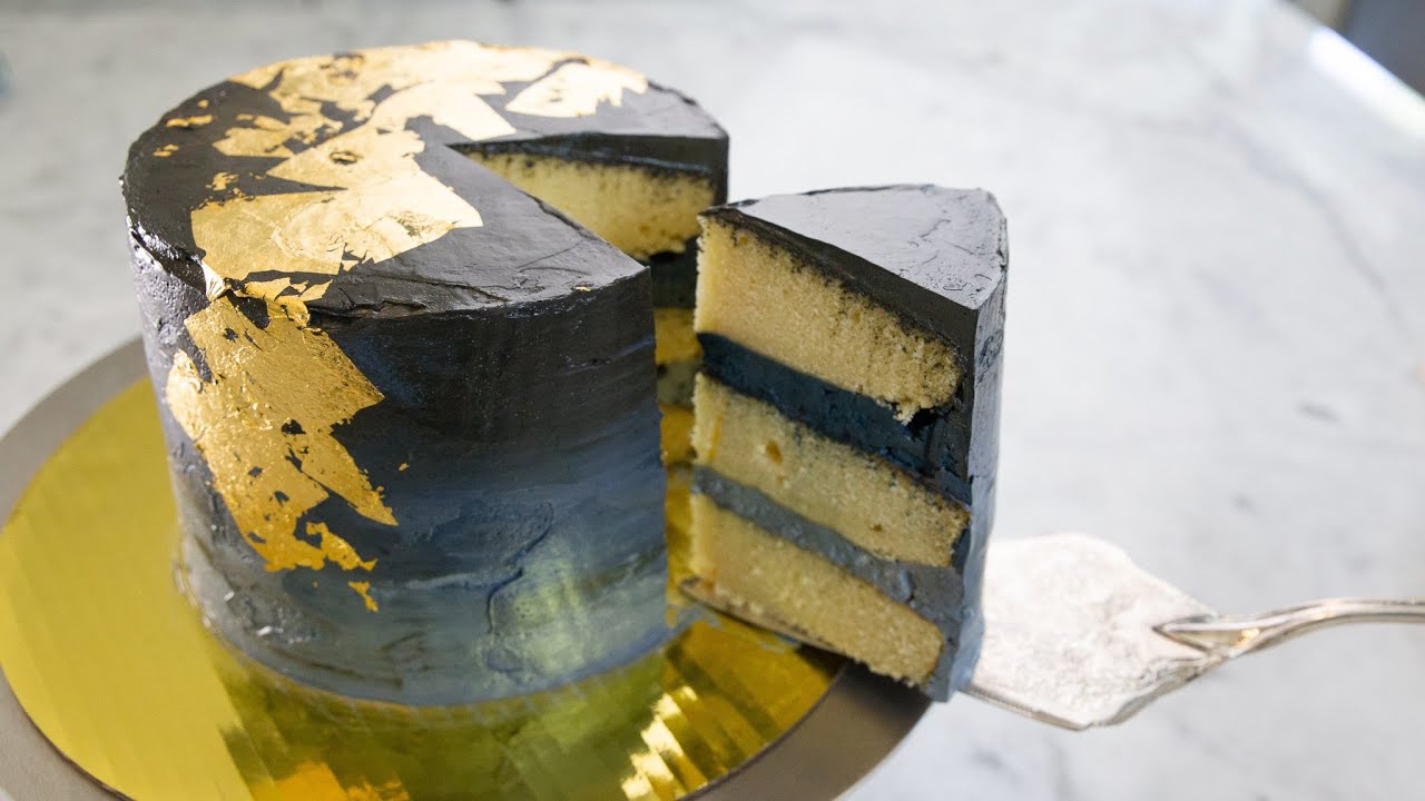 Italian Meringue Buttercream Vanilla Fathers Day Cake with Gold Leaf|Anneke Cooking