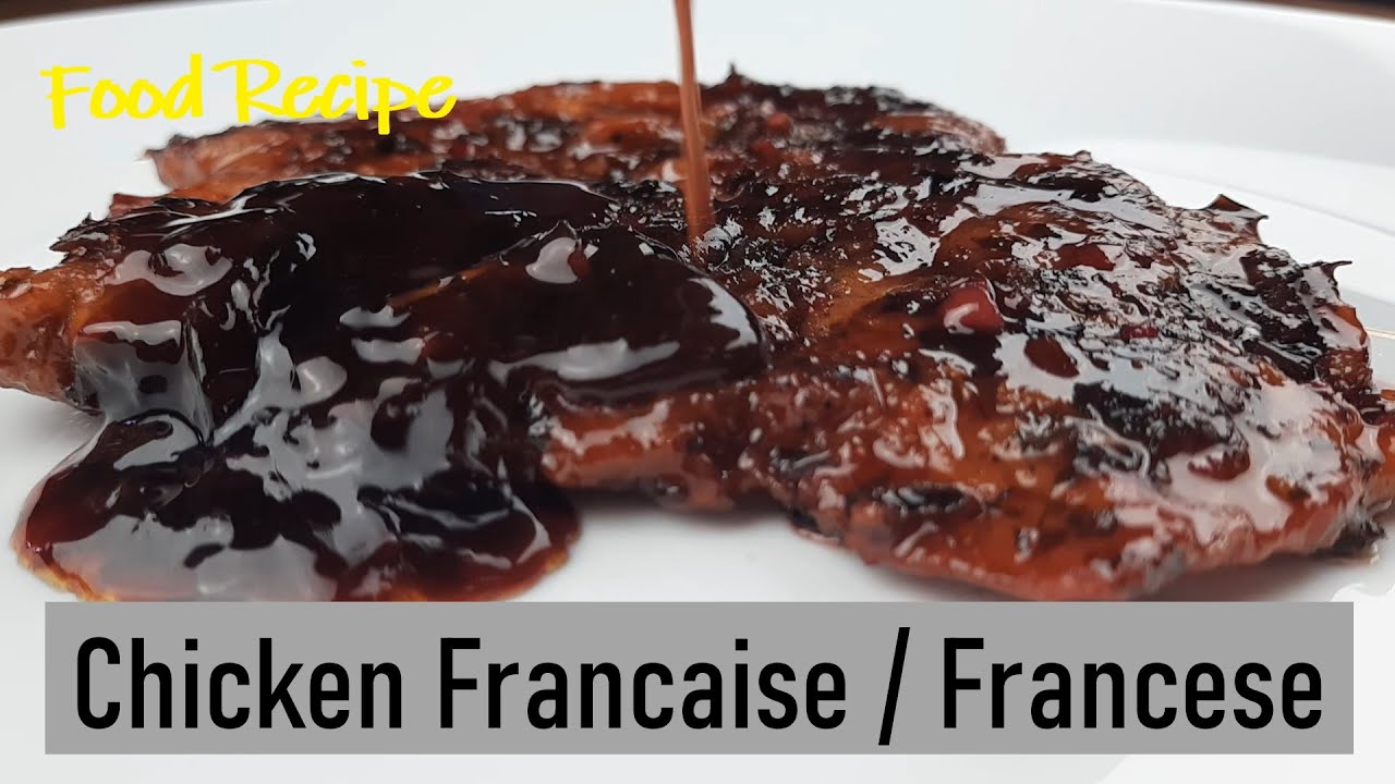 Chicken Française. Chicken Française (or Chicken Francese) is an Italian-American dish of flour-dredged, egg-dipped, sautéed chicken cutlets with a lemon-butter and white wine sauce. … Despite being such a well-known dish in Italian-American culture, francese is not a classical dish or sauce.