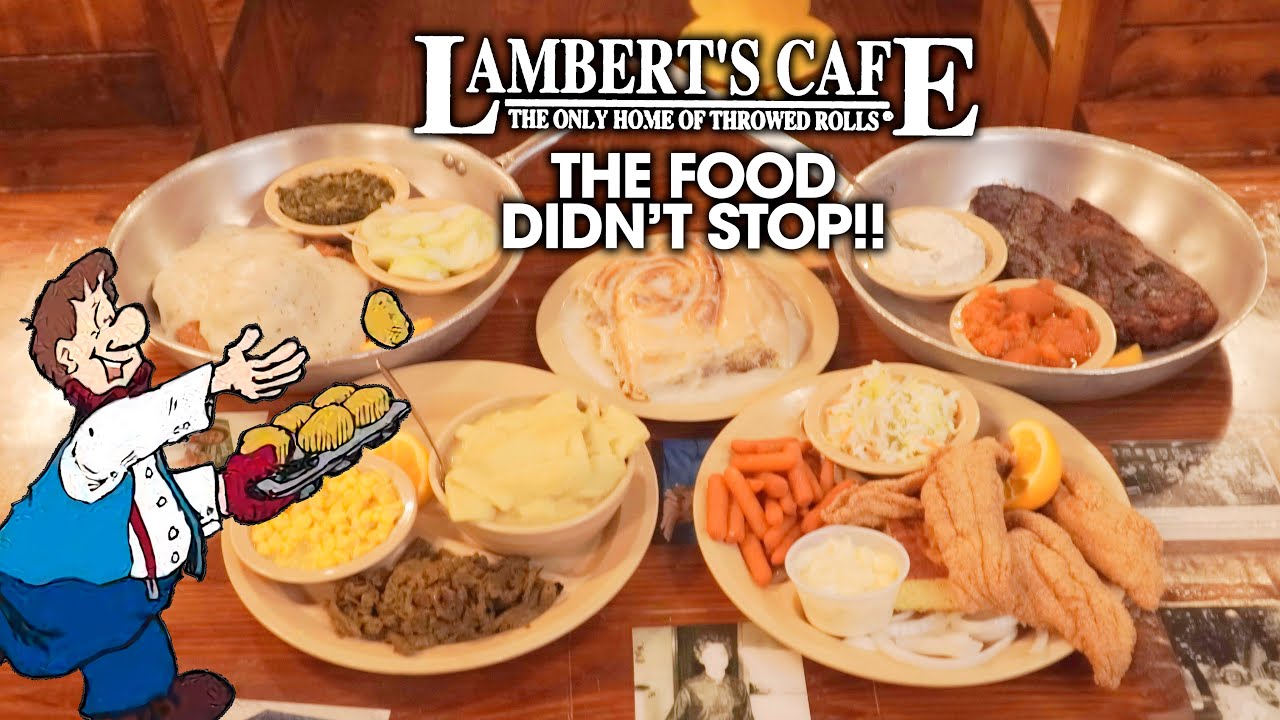 Dinner is served everybody, and this episode #27 features lots of homestyle country cooking food items from Lambert’s Cafe in Ozark, Missouri!! Lambert’s Cafe is famous around the midwest and Alabama for their throwed rolls and delicious homestyle food favorites!! Their motto is, “Come hungry, leave full, and hopefully have a laugh or two.” I ordered four of their homestyle entrees, including chicken fried steak, fried catfish, chicken and dumplings, and a BBQ pork steak. That all came with 9 side items total and I also got to enjoy some of their famous throwed rolls and “pass-arounds” which are typically served to diners while waiting for their food. Thanks to our server Tiffany and all the hard-working staff at Lambert’s Cafe for the incredible homestyle dinner they served me. Thanks especially to everyone helping via Patreon for your support which is sponsoring this series where we help local small businesses and restaurants around the Springfield, Missouri area where I live. There are just 3 remaining Dinner Is Served episodes upcoming!!