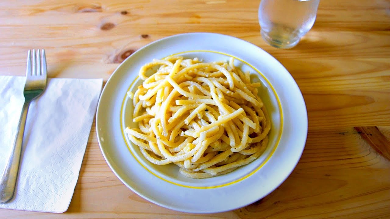 While in Italy, I had a chance to get my hands on some fresh pasta, garlic, and a delicious Pecorino Romano sauce. Watching this, I can still smell the delicious aroma of pepper and cheese that filled the tiny kitchenette for hours after we ate.