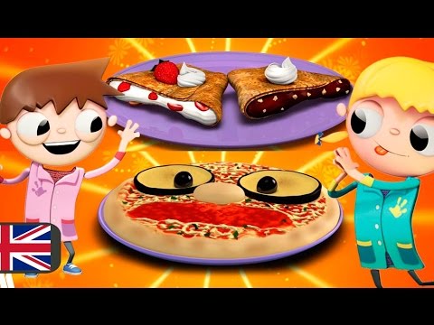Cook with kids easy recipes, cooking with children. Telmo and Tula show you the most popular french and Italian recipes: pizzas and crepes